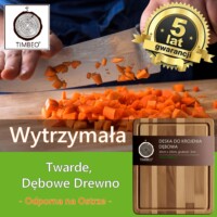 - Wysokiej jakości duża, drewniana (dąb) deska do krojenia +0,5l oleju lnianego do jej konserwacji,