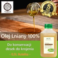 - Tylko my dodajemy olej lniany 100% naturalny do konserwacji do deski do krojenia,