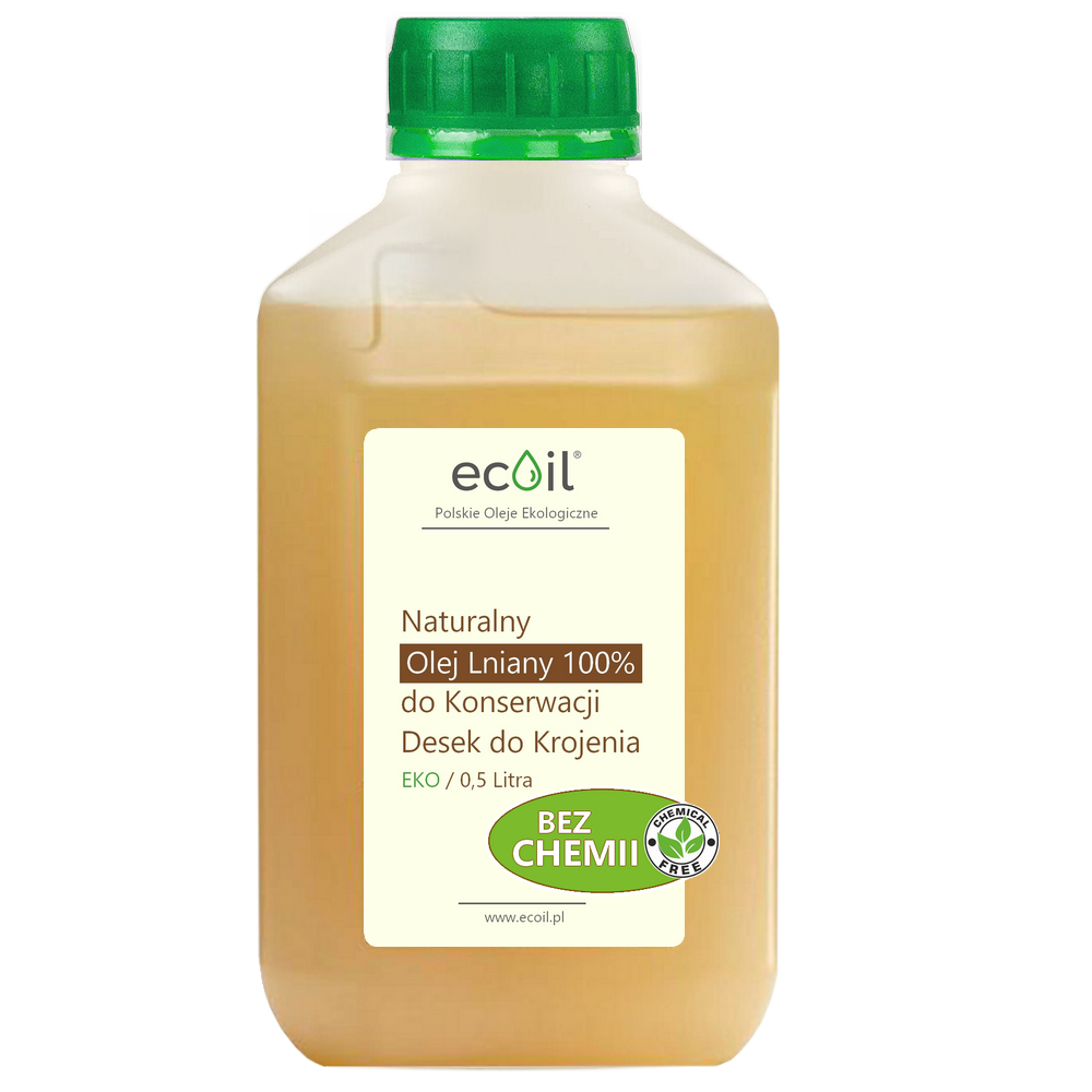 - Butelka 0,5l 100% naturalnego oleju lnianego dedykowanego do konserwacji desek do krojenia (możliwość kontaktu z żywnością),